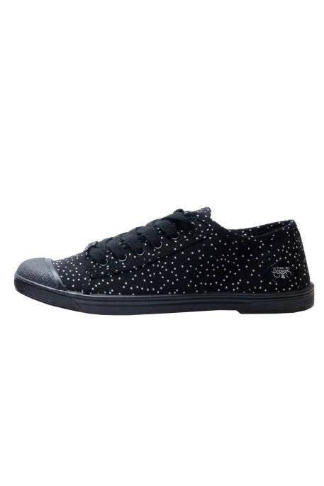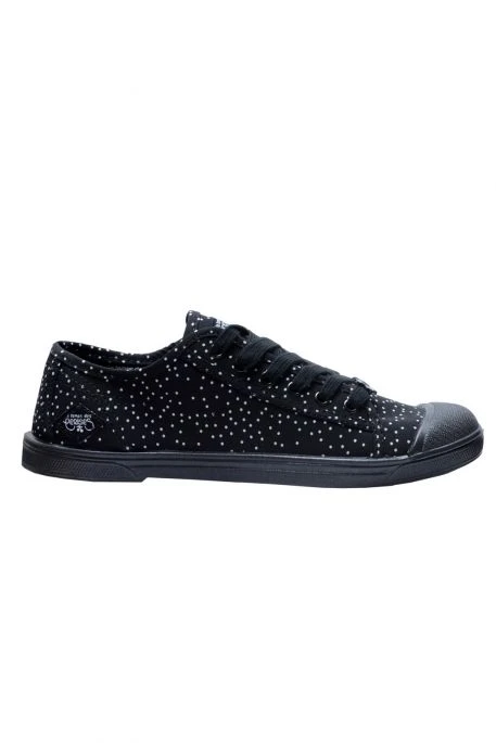Baskets Le Temps Des Cerises Basic pour femme. Baskets en toile , Surpiqûres noires et lacets noirs. Semelle noire. Petits points blancs ..