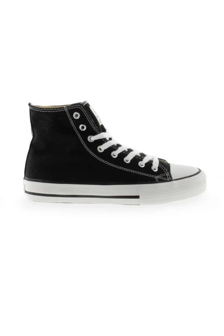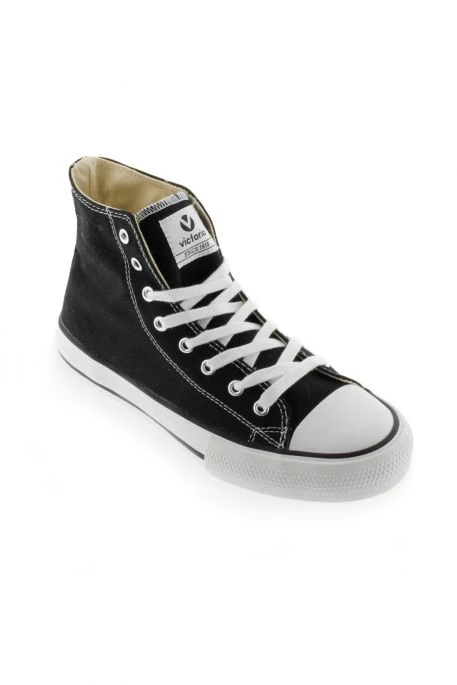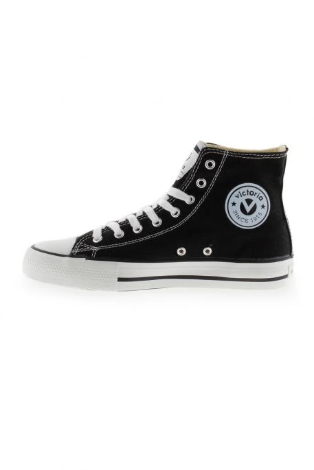 Baskets montantes Victoria avec bout en caoutchouc fermeture lacets, logo Victoria estampillée sur le côté, baskets en toile.
