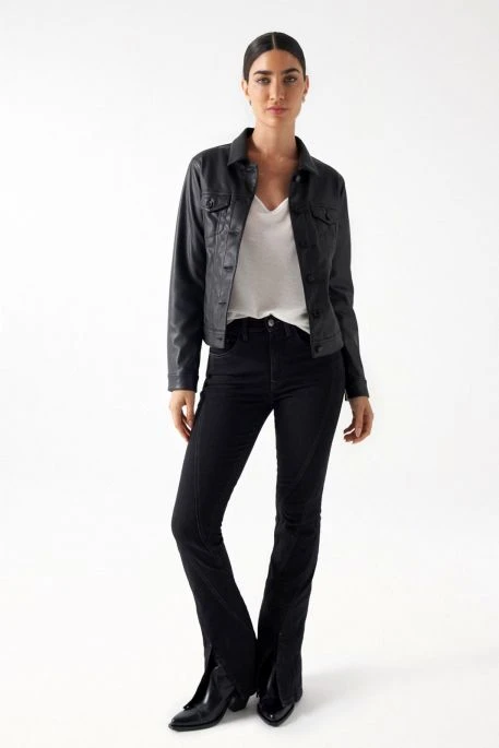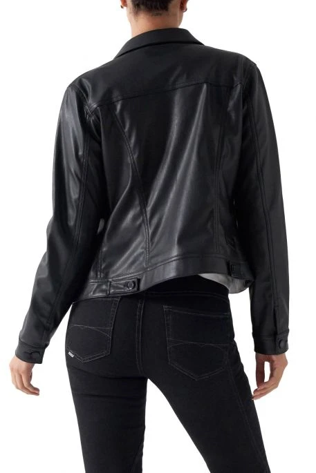 Blouson Salsa Effet Cuir Slim pour femme. Blouson à manches longues, coupe slim, fermeture par patte de boutonnage sur le devant, poignets boutonnés. Ce modèle de blouson effet cuir possède 2 poches poitrine à rabat boutonné et 2 poches latérales.