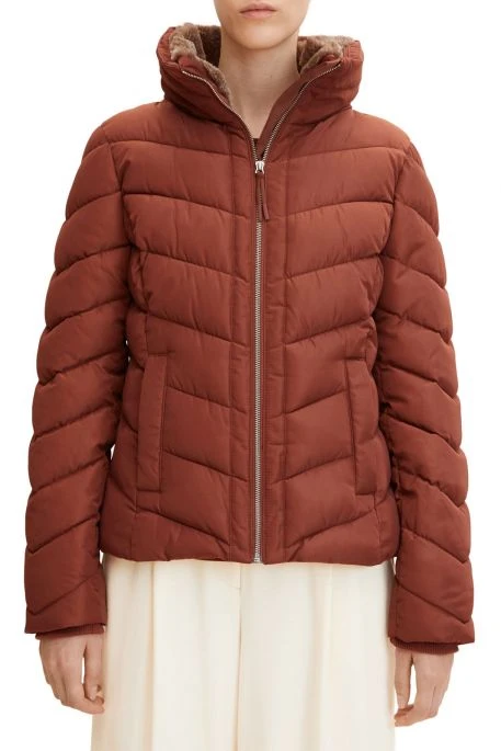 Blouson grounded brown Tom Tailor pour femme. Blouson à manches longues avec un col montant et fermeture éclair. Deux poches latérales en biais avec fermeture éclair. Fausse fourrure à l’intérieur du col et du haut du dos. Coupe régulière.
