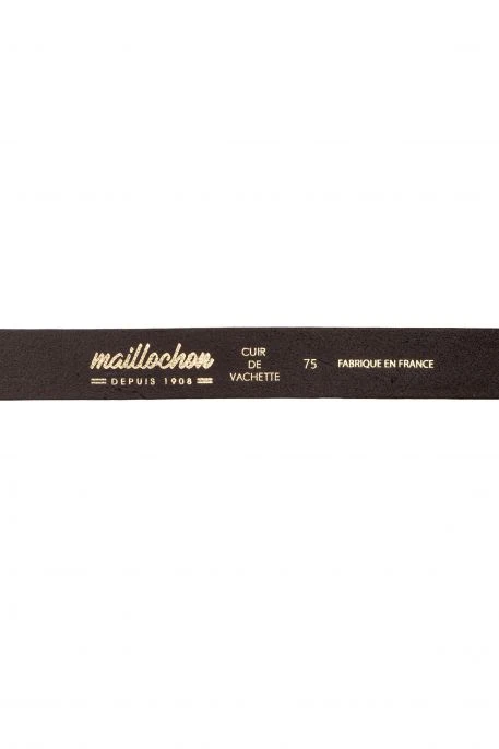 Ceinture Maillochon Jourdain pour homme. Ceinture en cuir de vachette, boucle en acier et logo « M » de Maillochon embossé et tranche arrondie de couleur marron.