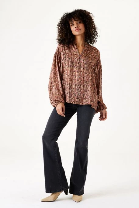 Magnifique chemise signée Garcia, vous allez aimer son motif, sa matière fluide et confortable,sa coupe fluide, son col fermé par de jolis boutons noirs.