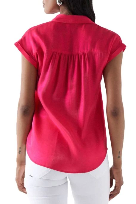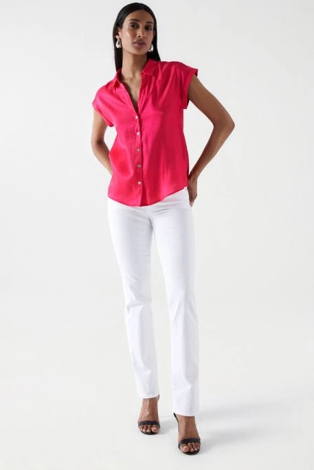 Chemisier pour femme Salsa. Chemise sans manches boutonnée sur le devant col V. Effet satiné.