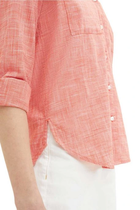 Chemisier Tom Tailor manches longues avec col, chemisier avec ouverture en V et patte de boutonnage, ce chemisier est confectionné avec du coton doux et durable, poches poitrine plaquées, fonction de revers pour attacher les manches