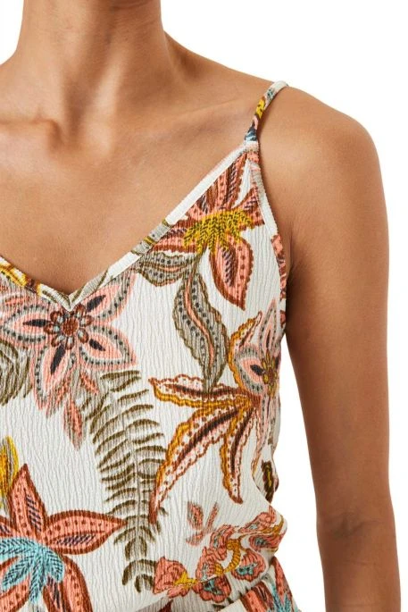 Débardeur pour femme de marque Garcia, débardeur à fines bretelles réglables, débardeur femme avec encolure en V dégagée, motif floral.