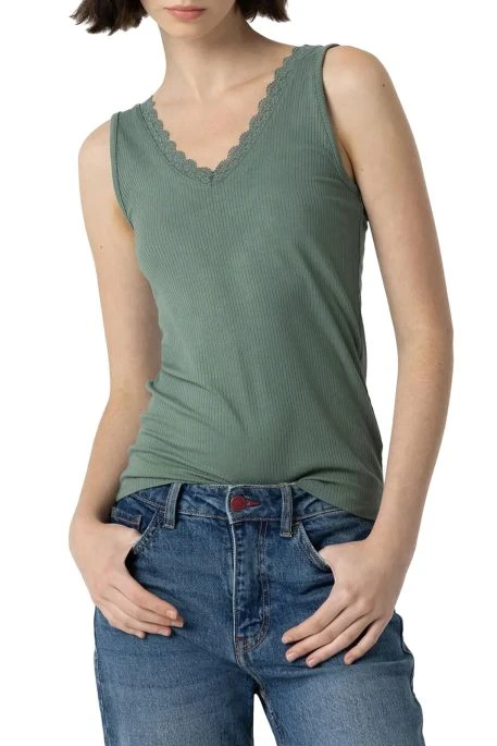 Pack de 2 débardeurs Tiffosi pour femme. Tops col V avec dentelles, côtelé. Ce pack contient 2 débardeurs de différentes couleurs.