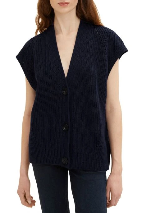 Gilet sans manches pour femme de marque Tom Tailor, gilet avec une encolure en V et une patte de boutonnage et confectionné avec du coton biologique issu d’une culture durable