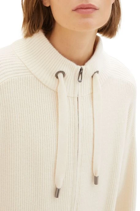 Gilet Tom Tailor pour femme, gilet avec col montant, lien de serrage au col, fermeture zippée, esprit très cocooning, très confortable à porter, matière toute douce.