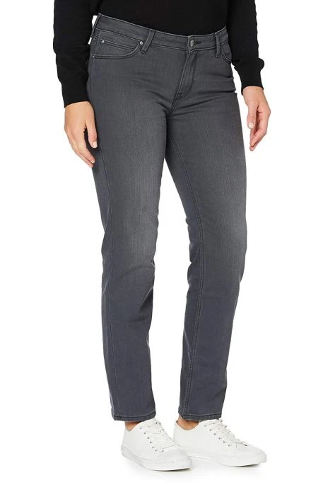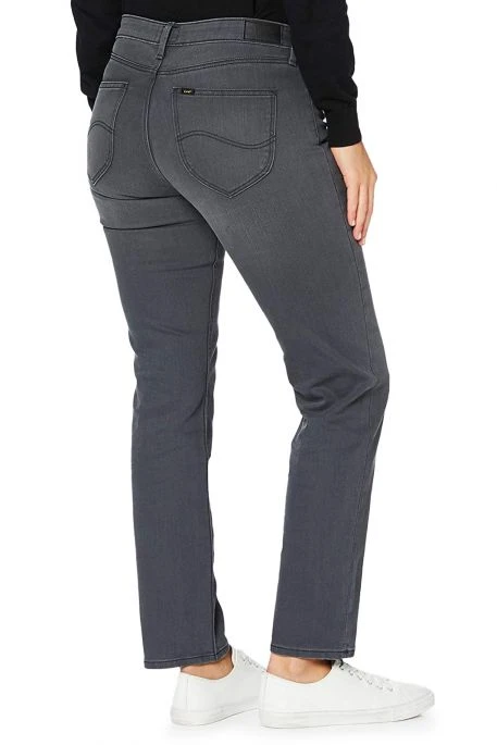 Jean Lee Marion Straight pour femme. Jean taille haute, coupe droite ajustée aux cuisses. Jean cinq poches, fermeture zippée.