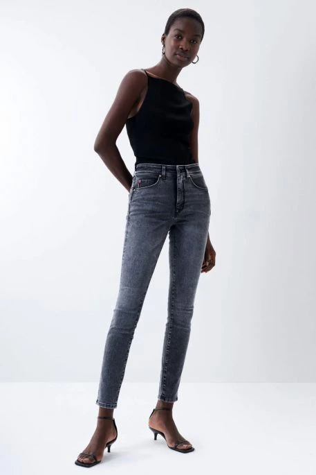 Jean Salsa Faith Push In Skinny. Détail effet usure. Taille haute avec passants, fermeture à un bouton et fermeture éclair. Trois poches devant. Deux poches au dos