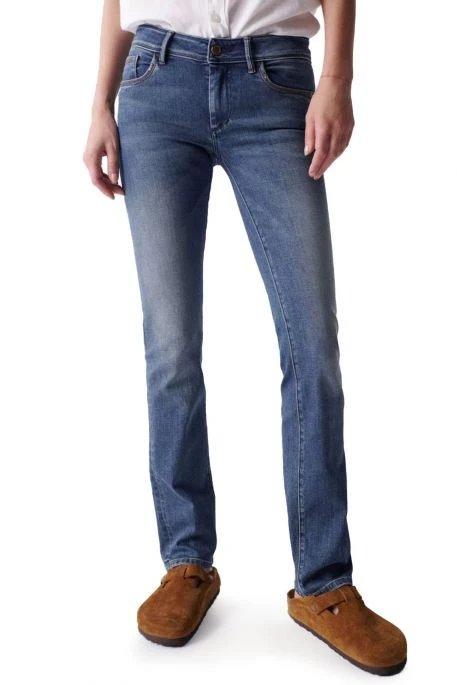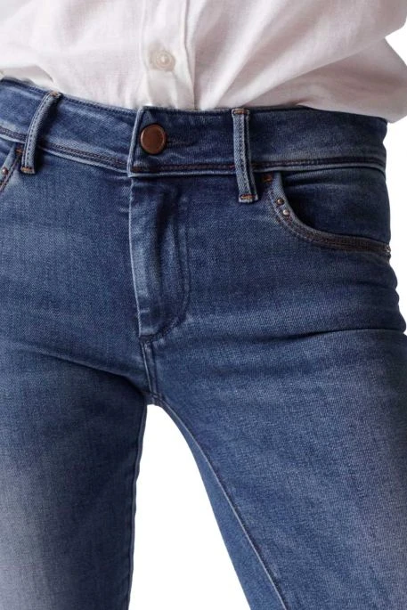 / Jean Salsa Wonder slim. Jean à taille moyenne et jambe slim. Fermeture avec un bouton et une fermeture éclair. Cinq poches. Effet délavé sur le devant. Mettez vos courbes et votre silhouette en avant.