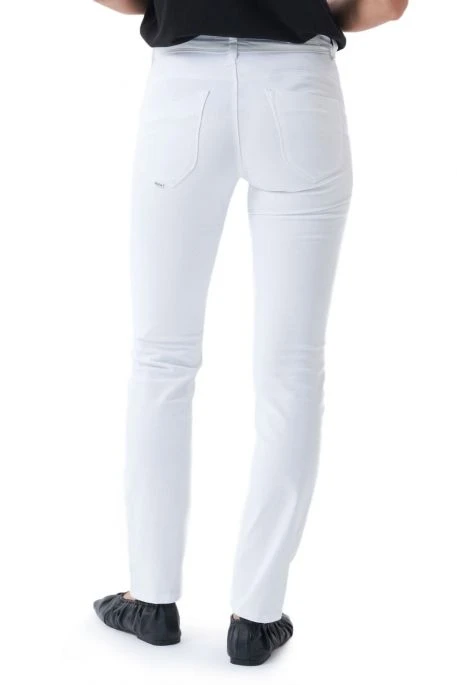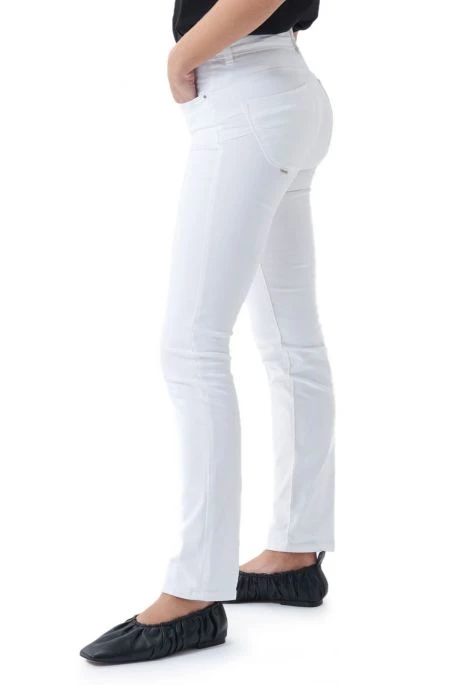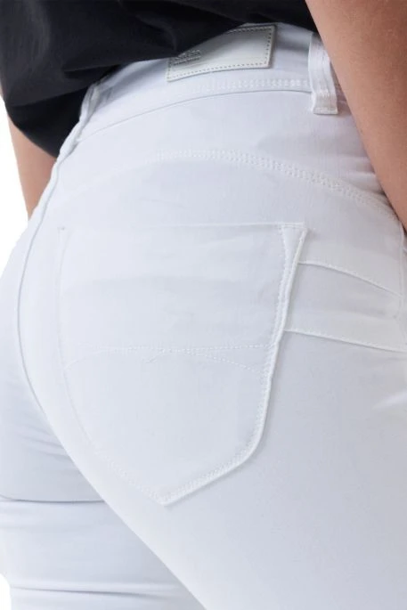 Jeans Salsa Secret slim pour femme. Jean blanc de taille haute avec une coupe slim fit, une fermeture zippée, vous apprecierez l’effet Push-In et ses deux boutons argentés.
