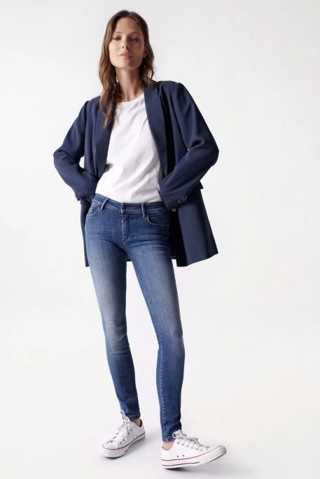 Jean Salsa Wonder Skinny pour femme. Jean de coupe skinny, hauteur de taille basse, jambe skinny, effet push-up. Braguette zippée, 5 poches.