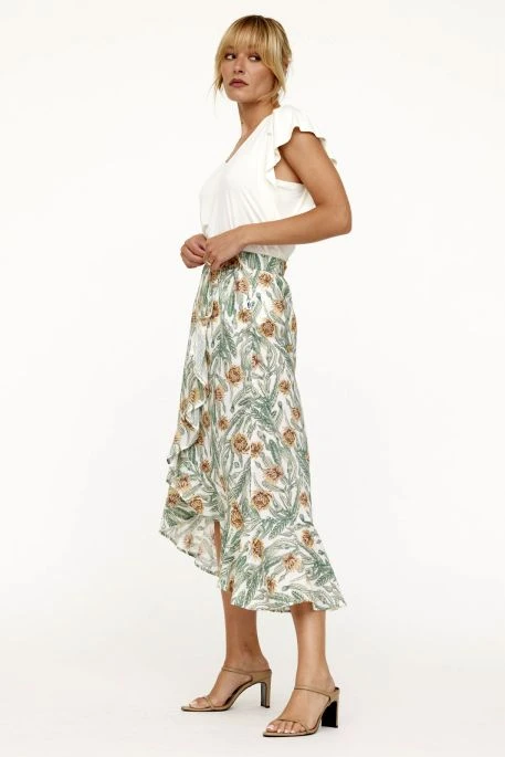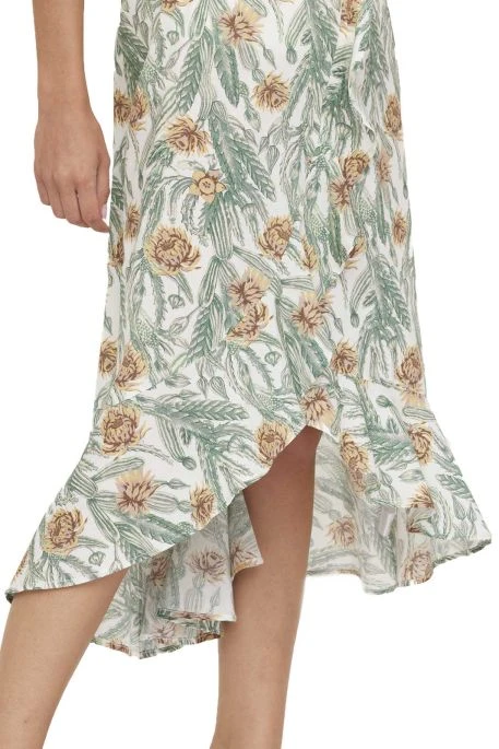 Jupe Lee Cooper Pamela, jupe à valants assymétrique en voile de coton avec imprimé all-over cactus, la ceinture est élastiquée à la taille,