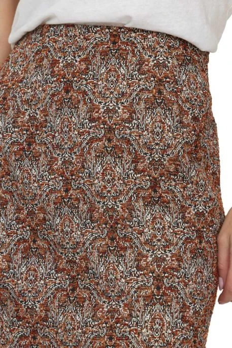 Jupe Lee Cooper , jupe tulipe courte droite en jacquard cachemire avec touches de lurex, jupe zippée sur le côté.