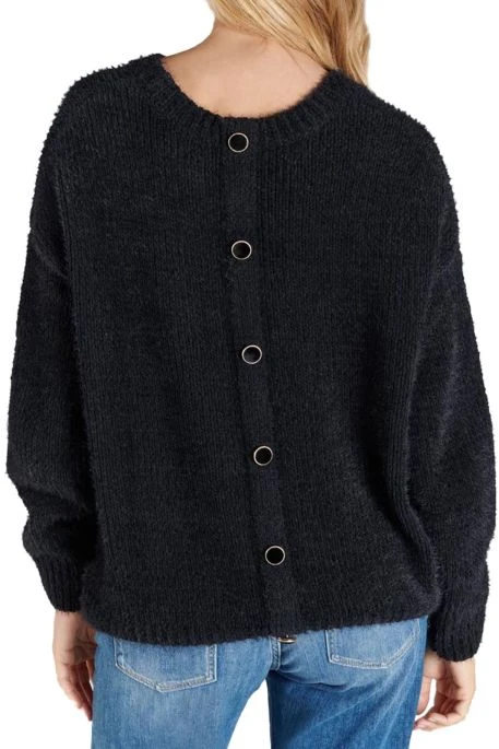 Découvrez le pull Daisy de Temps des Cerises, pull avec coupe loose, boutons noirs et dorés qui parcourent toute la longueur du dos, pull en maille douce agréable à porter.