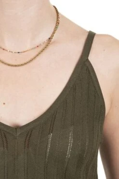 Débardeur Levi’s® pour femme, encolure en V, coupe ajsutée, débardeur avec un ourlet roulotté à effet ondulé, une bordure en dentelle et un petit nœud au milieur du col.