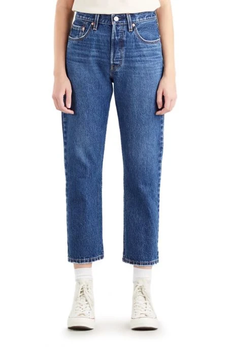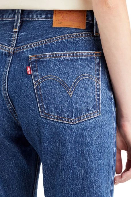 Jean Levi’s® 501® Crop pour femme. Jean de coupe ajustée au niveau des hanches et des cuisses, jambes droites, taille haute. Braguette boutonnée, tissu peu extensible. Ce modèle se porte court (7/8).