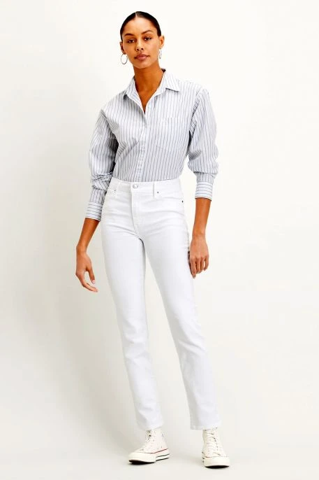 Jean Levi’s® 724™ pour femme. Jean taille haute, slim au niveau des hanches et des cuisses, jambes droites. Braguette zippée, denim 5 poches.