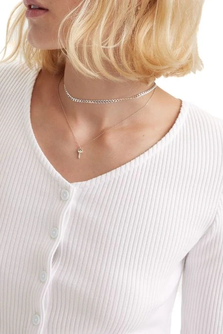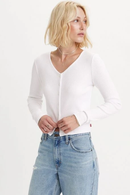 Tee-shirt Levi’s® Monica pour femme. T-shirt à manches longues, coupe slim, col en V. Modèle boutonné de haut en bas, tissu côtelé.