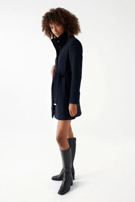 Manteau Salsa Grace pour femme. Manteau en laine à manches longues, coupe slim, fermeture par boutons dissimulés sur le devant sous patte de boutonnage. Poignets boutonnés, poches latérales et intérieur isotherme. La ceinture réglable est la touche finale qui vous permet de l’ajuster à votre corps au gré de vos envies.