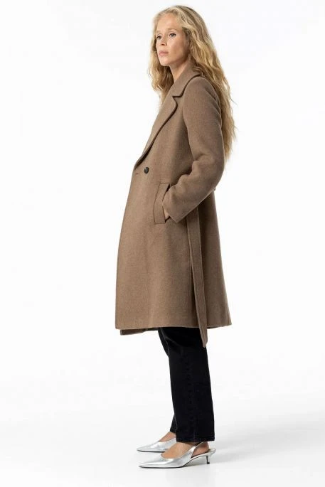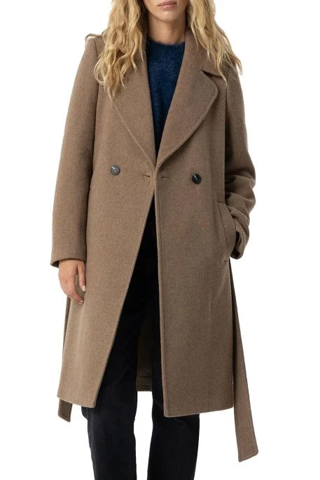 Manteau pour femme de marque Tiffosi, long manteau avec ceinture à la taille et fermeture par bouton, encolure en V, 2 poches lattérales.