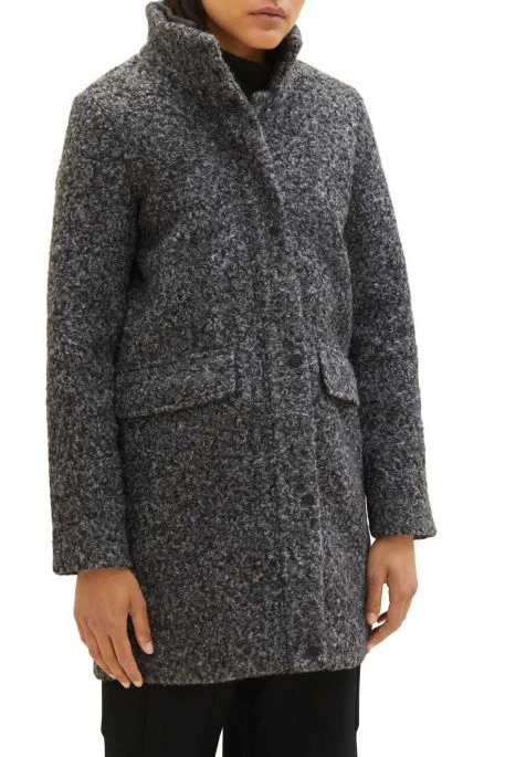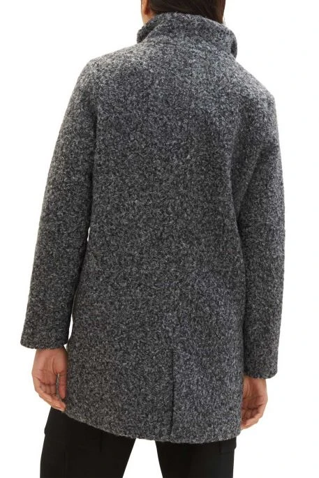 Manteau Tom Tailor pour femme. Manteau gris avec fermeture zippée et boutons pressions, manteau avec deux poches lattérales.La coupe est régulière, col montant.