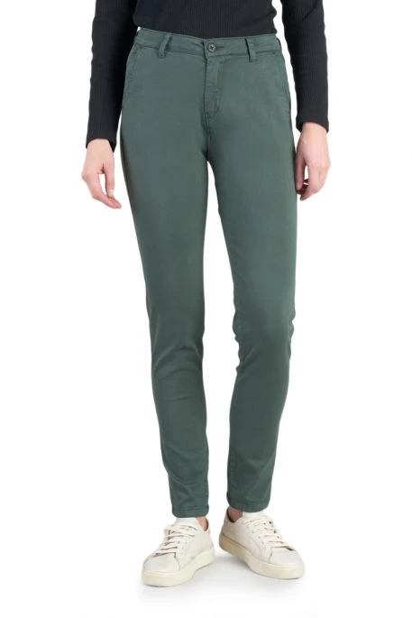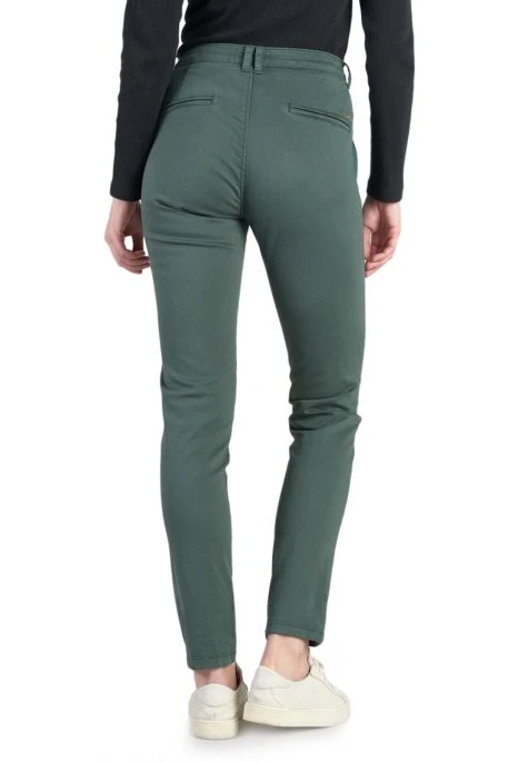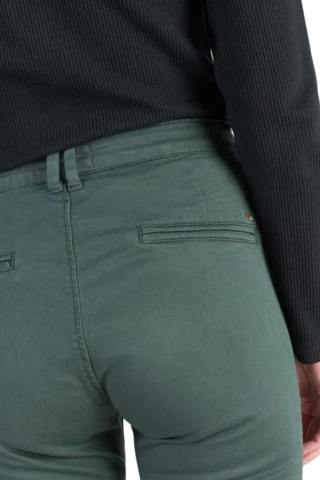 Pantalon Chino Le Temps des Cerises Dyli4 pour femme. Pantalon de coupe chino, jambe ajustée, taille haute, fermeture par bouton et braguette zippée. Ce modèle possède 2 poches latérales italiennes et 2 poches sur l’arrière passepoilées.