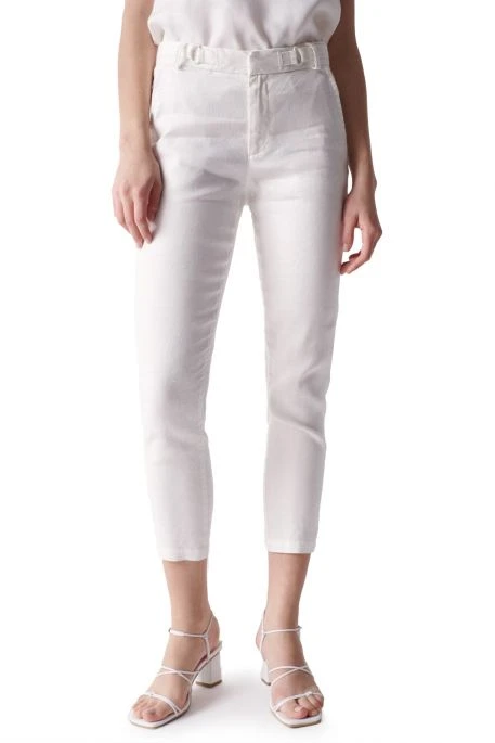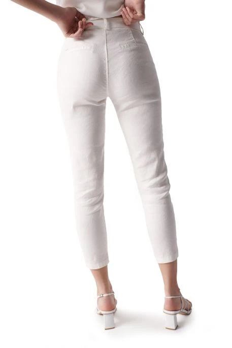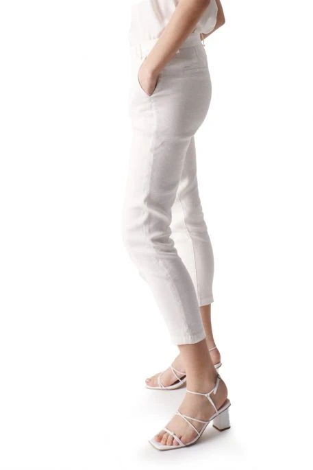 Magnifique pantalon en lin de marque Salsa, vous allez apprécier sa taille haute, sa matière, coupe cropped slim, beaucoup d »élégance et de classe pour ce pantalon chino bleu