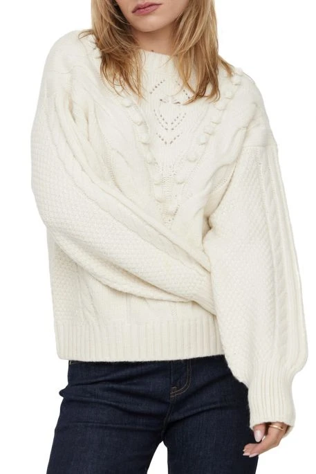 Pull Lee Cooper pour femme, pull en laine mélangée douce et confortable, la maille est torsadée avec des petits pompons, les manches sont tombantes.