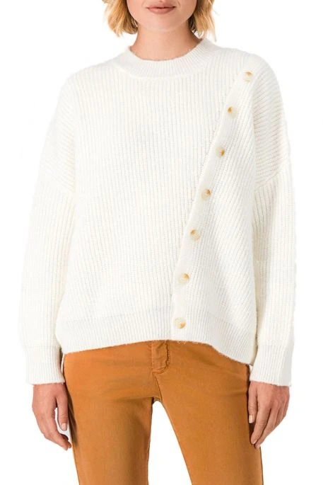 Pull en laine Teddy SMith pour femme, pull blanc en maille avec col cheminée, boutons décoratifs sur le devant,