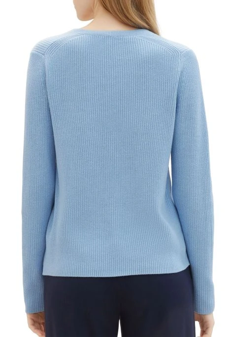 Pull Tom Tailor pour femme, pull basique avec encolure en V, manches longues, confectionné en coton doux et durable, la coupe est regular fit.