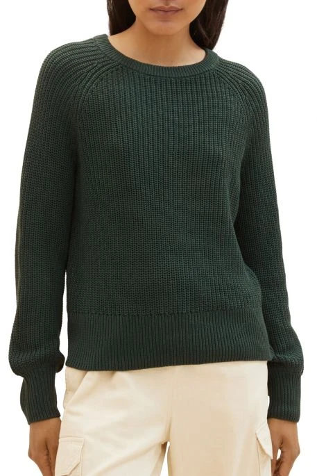 Pull pour femme Tom Tailor, pull en maille en coton doux et durable, pull manches longues avec encolure ronde, coupe basique avec manches raglan.