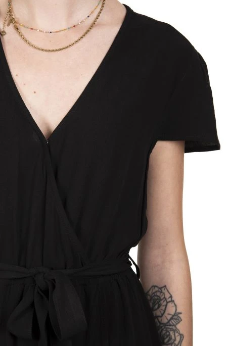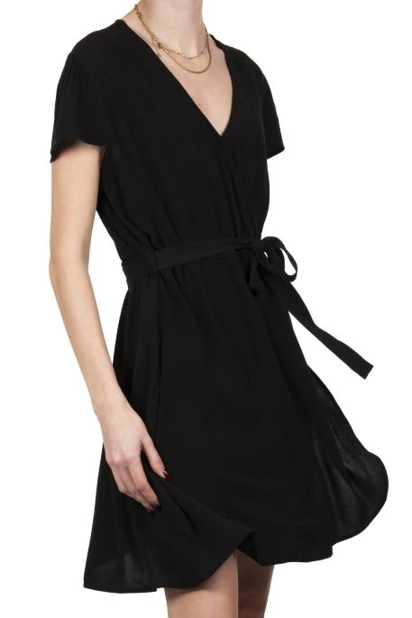 Robe Teddy Smith pour femme. Robe croisée sur le devant et élastiquée au tour de taille. Nouée par une ceinture en viscose et passants au tour de taille.