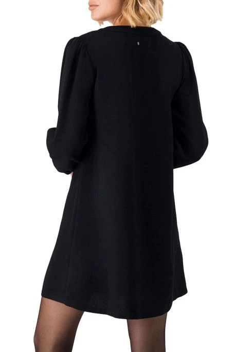 Robe Teddy Smith Linda, robe manches longues,encolure en v, robe fluide noire avec fermeture boutonnée sur le devant.