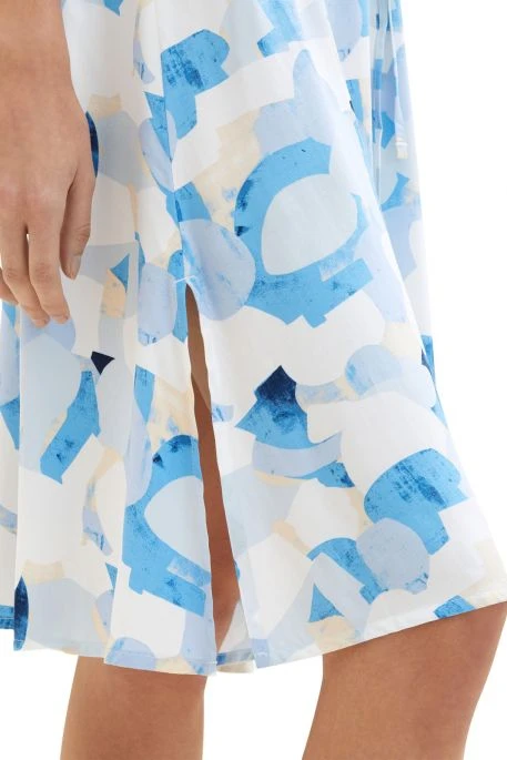 Robe Tom Tailor en viscose fluide, robe avec une ceinture en tissu à manches courtes avec une encolure en V, avec un imprimé, Coupe régulière