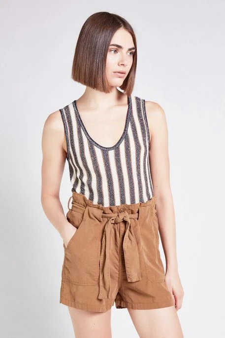 Short Teddy Smith Sherwood pour femme. Short de coupe décontractée, lien de serrage de même tissu. Poches latérales et dans le dos.