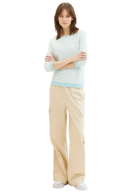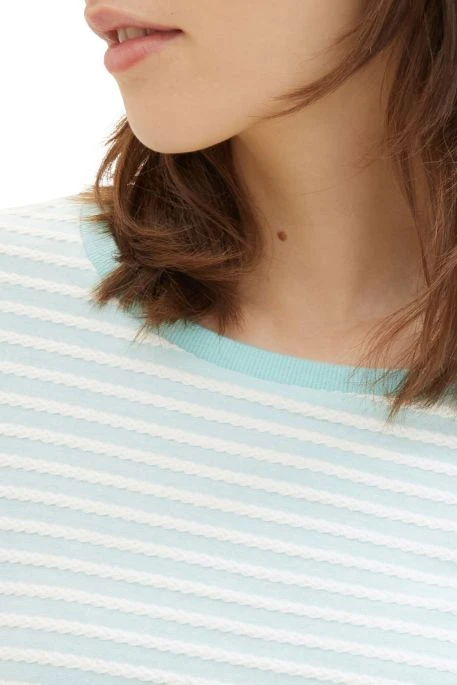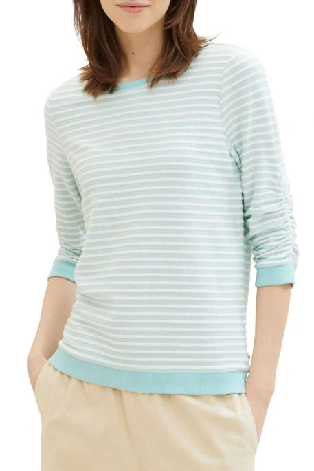 Sweat Tom Tailor pour femme, pull manches longues avec encolure ronde, manches 3/4, pull rayé avec coupe droite et poignets cÎtelés contrastés.