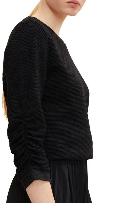 Pull Sweat Tom Tailor pour femme, pull avec une bordure côtelée sur les bords de l’ourlet, manches 3/4 à encolure ronde. Sweat texturé avec une coupe slim.