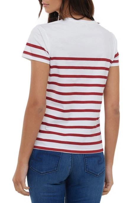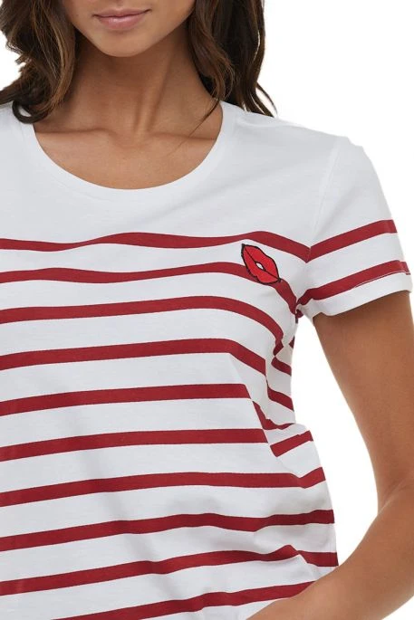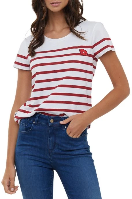 Tee-shirt Lee Cooper Ancia MC pour femme. T-shirt de coupe classique, manches courtes, encolure arrondie. Tee-shirt marinère pour femme avec badge « bouche » sur la poitrine.
