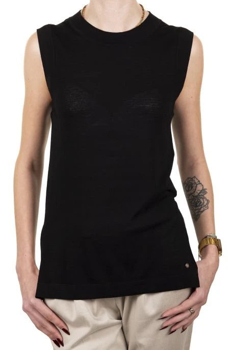 Débardeur en maille Teddys smith. Débardeur pour femme col rond haut, avec fentes sur les côtés.